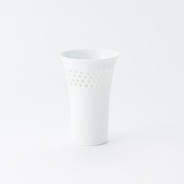 水晶彫りは、江戸時代より伝わる、優しい蛍の光のような表現をする「蛍手(ほたるで)」という技法をさらに探求した結果生まれた技法。長崎県波佐見町、丹心窯で一つひとつ職人の手に寄って作られています。こちらの柄は、水晶彫りの中でも特に作るのが難しく、職人の高い技術が詰まった逸品です。
