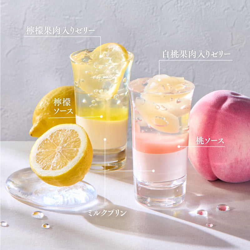 とろりとまろやかなミルクプリンと桃を濃縮したソース、みずみずしい桃ゼリーを3層にすることで、食感と味に奥行きが生まれました。