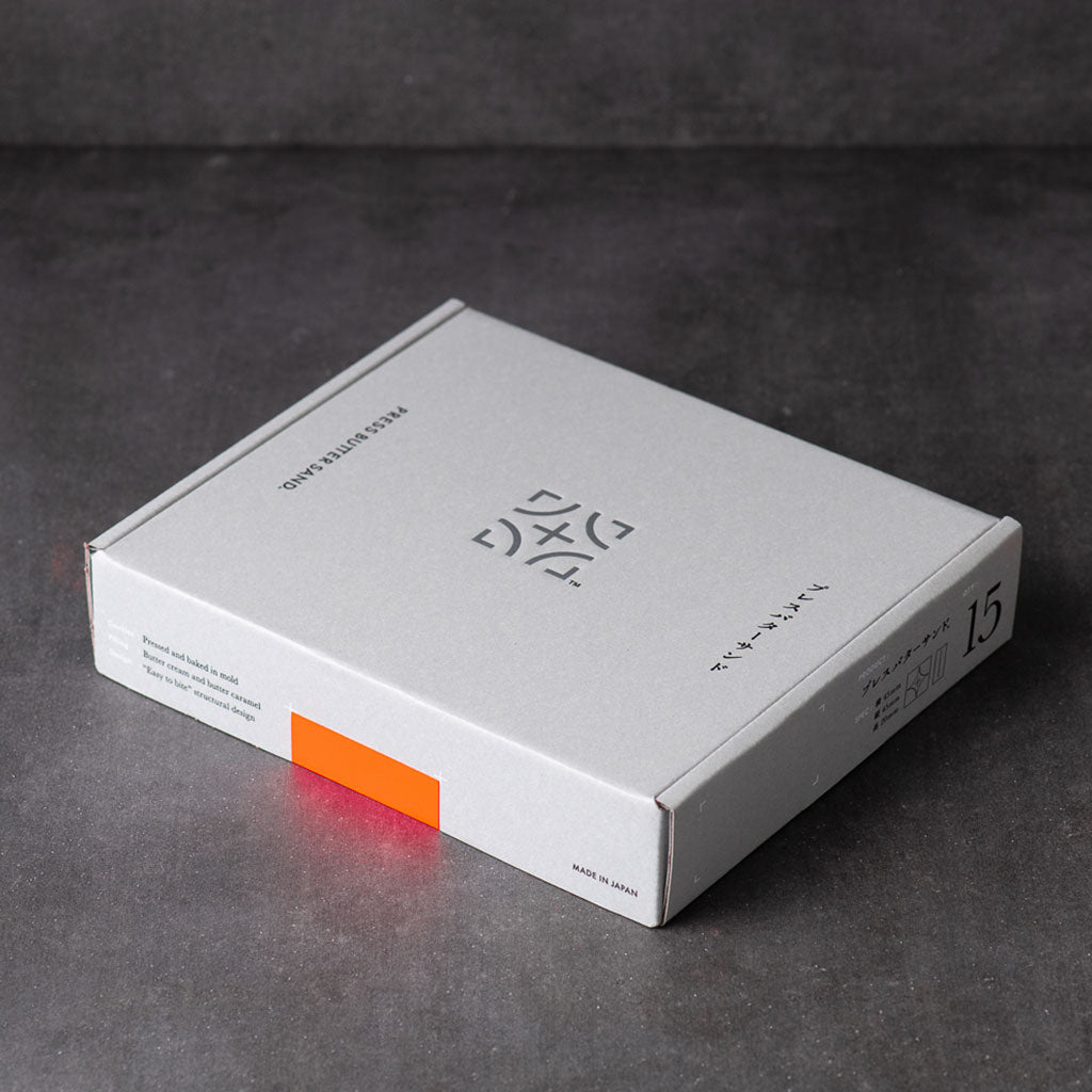 サクサク食感のクッキーに、濃厚なバタークリームと口どけなめらかなバターキャラメルの2層を挟んだバターサンドです。フレッシュバターをたっぷり使い、バターそのものの風味を楽しめる味わいと食感に仕上げました。クッキーは和菓子の製法「はさみ焼き」を採用し、高温で焼き上げることでよりサクサクの食感を生み出しています。