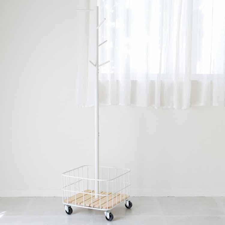 掛ける収納プラスワンでお部屋をもっとスッキリと便利に。                                                                                                                                                                                                             【商品に関して】サイズ:W380×D380×H1375mm カゴ内寸:W345×D345×H180mm  耐荷重:ハンガーバー/1.5kg  素材:支柱フレーム/スチール(φ28mm) 粉体塗装、カゴ/スチールフレーム(φ7、φ5mm)紛体塗装、底板/天然木(パイン材)塗装