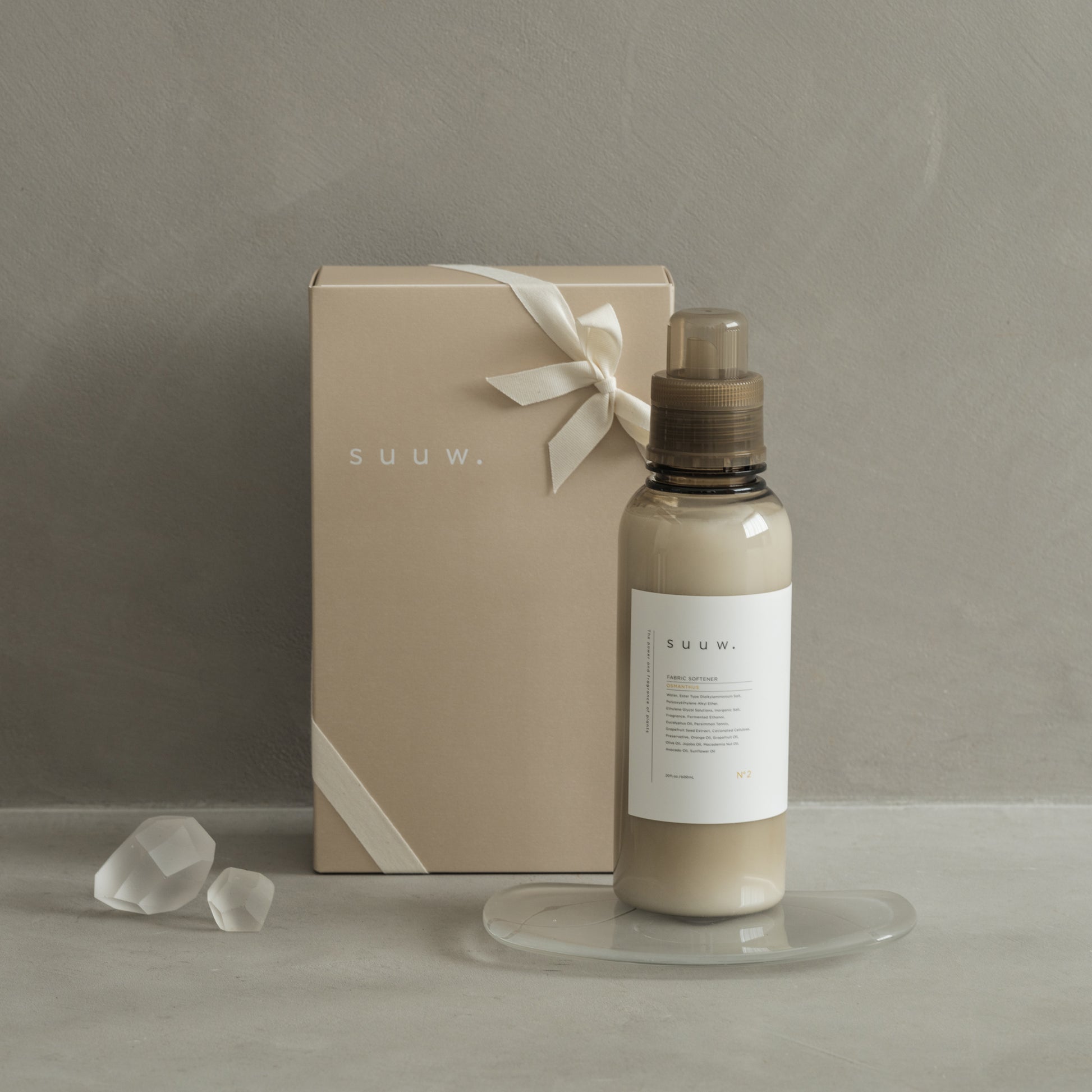 植物由来のフレグランスブランド「suuw.」による、天然由来成分95%以上の柔軟剤。こだわりの調香で、香水のように洗練された香りがふんわりと広がります。天然精油も配合しているため、やさしく残る香り付けが特徴です。お肌と地球にやさしい処方で、赤ちゃんの衣類やおしゃれ着にも使用OK。どんなシーンのギフトにもおすすめです。思わず深呼吸したくなるような、心地よいランドリータイムを。