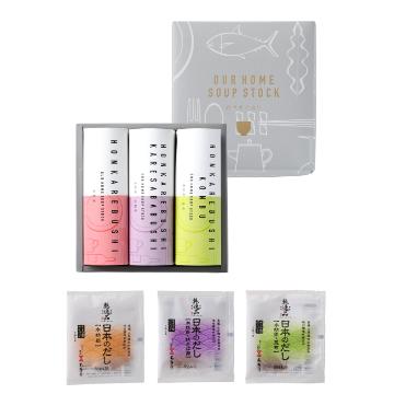 本枯節の旨味を活かした3種の「だしパック」を詰め合わせました。