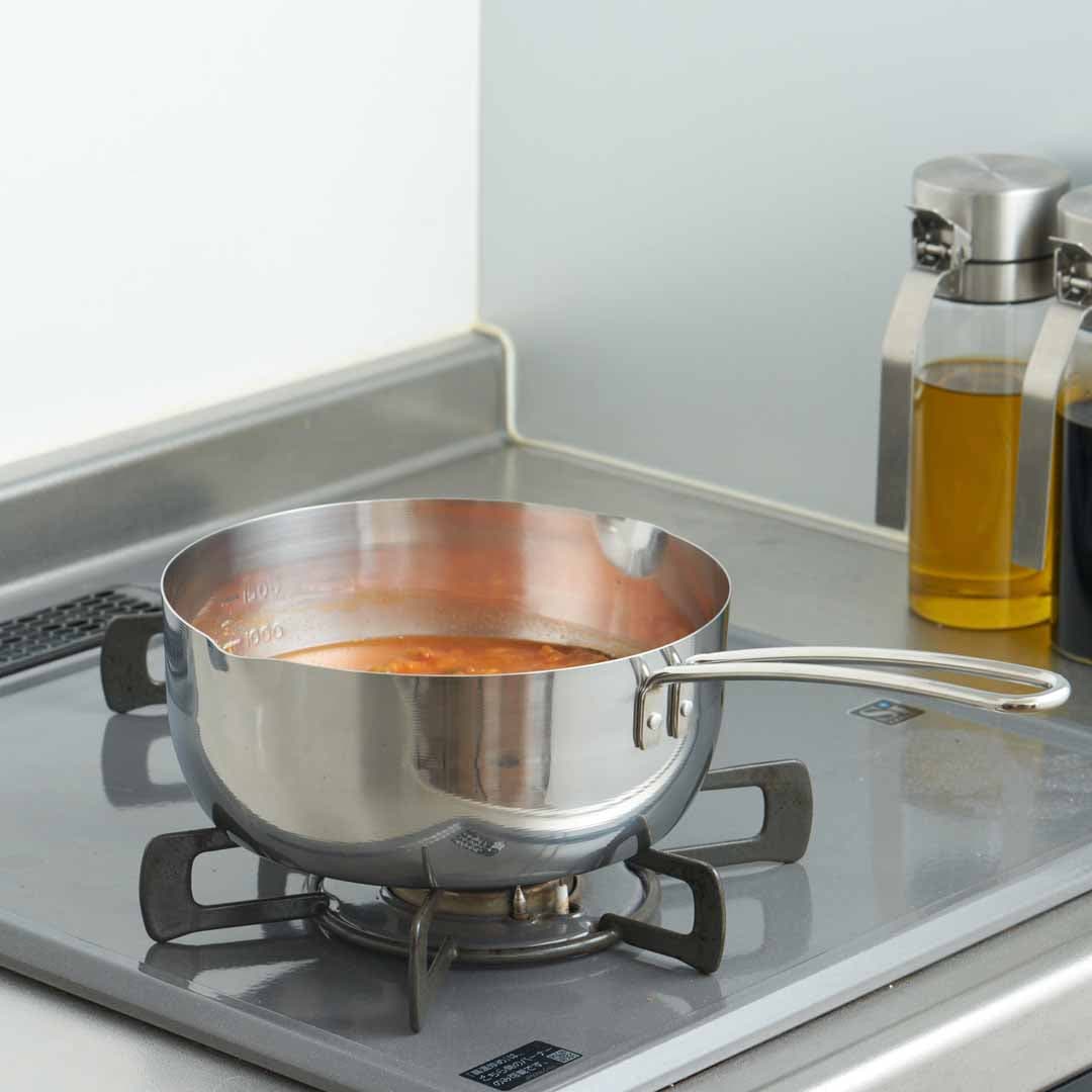 朝はお味噌汁。昼はうどん、夜は肉じゃがや筑前煮などの煮物など毎食大活躍!和食のほか、もちろん洋食にも。丈夫なステンレス製なので傷がつきにくいうえ、臭い移りもしにくくお手入れしやすいです。