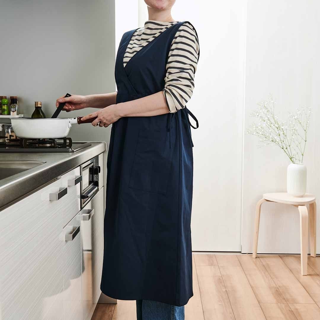 機能とデザインにこだわったエプロンです。ウエストまわりをきゅっと絞ることができるので、メリハリのある印象になります。