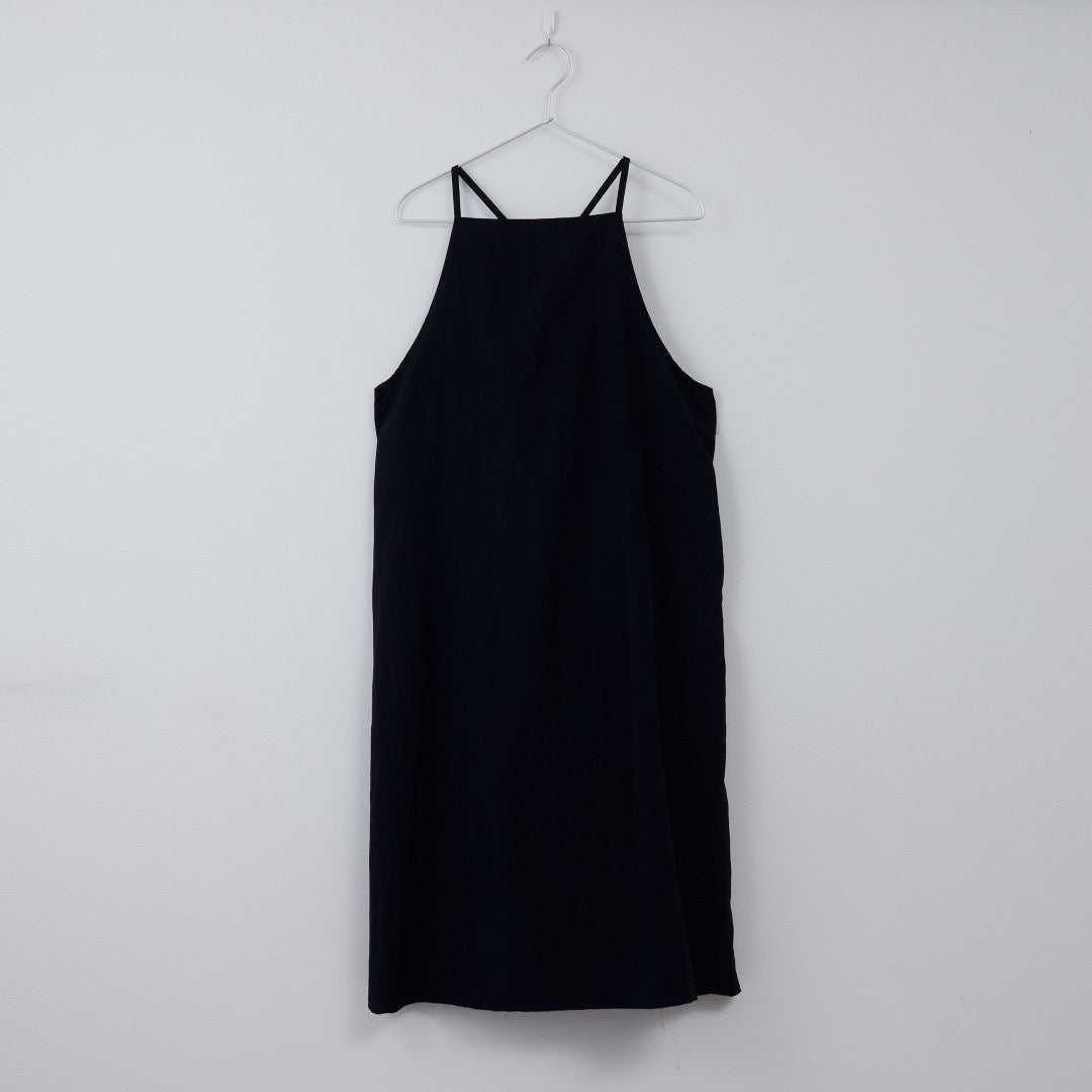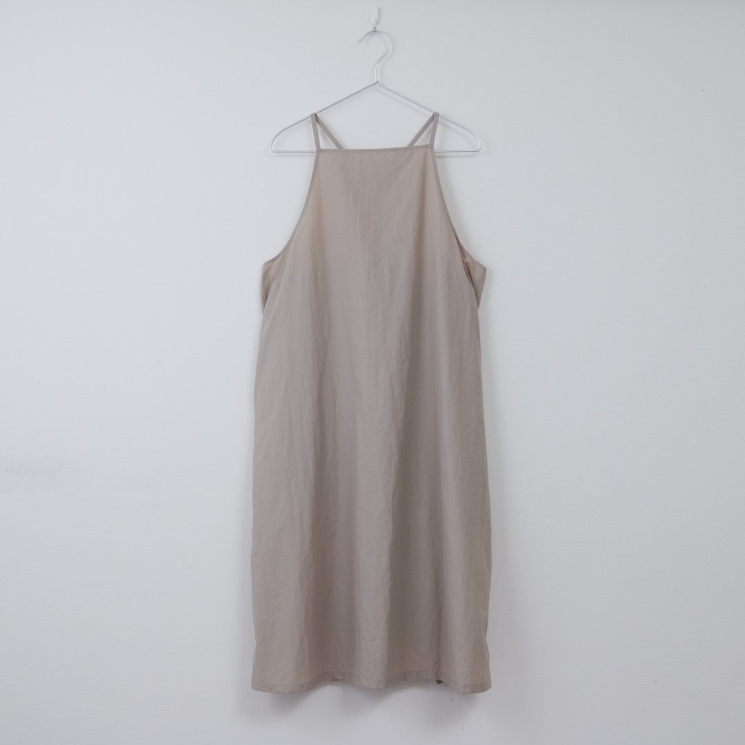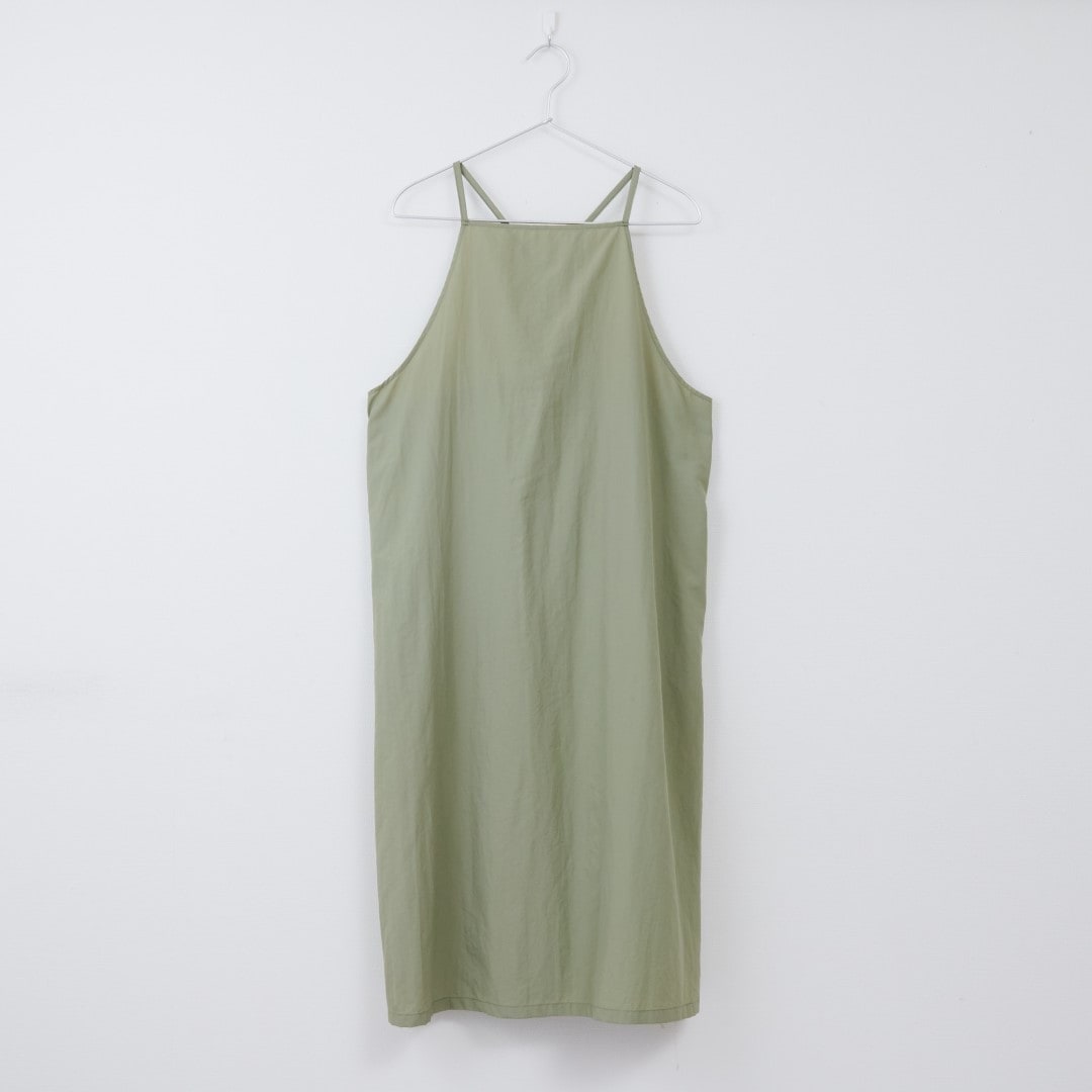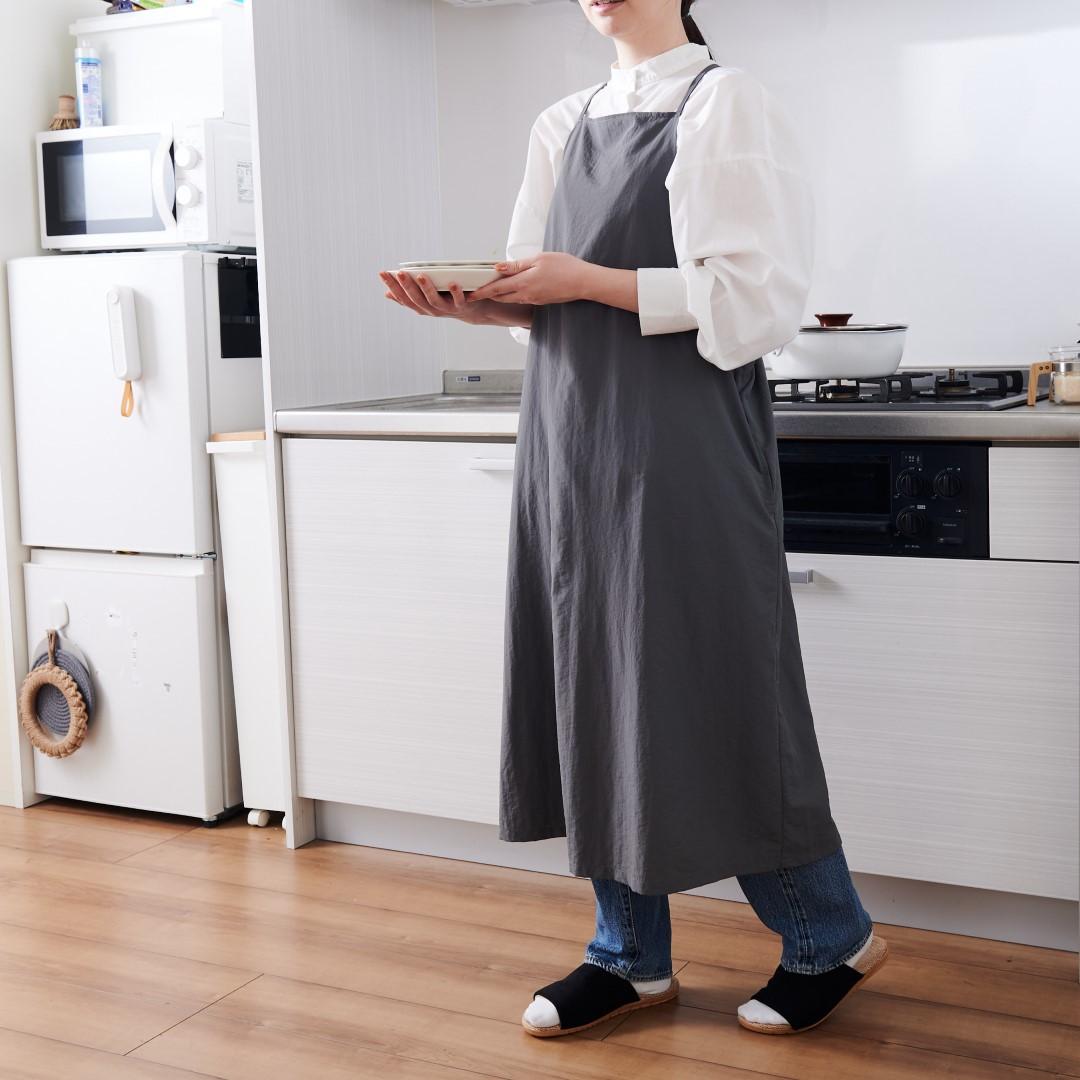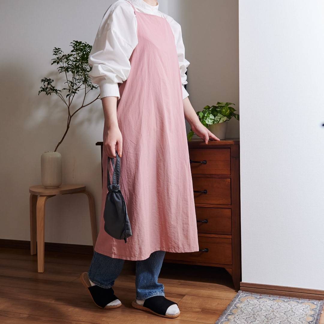 カラーバリエーションも増え、カジュアルに着ていただけるエプロンです。キャミワンピエプロンを着るときにごちゃついてしまう肩ひも。後ろのクロスの部分をあらかじめ縫っているので、着る時もごちゃつかず、スムーズにきることができます。
