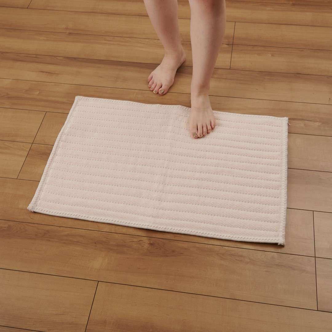 オフロ上がりのさっぱりとした爽快感をバスマットが台無しにしません。バスマットの内部にみっしり詰まった吸水パルプが表地から染み出た水分をグングンと吸い取っていきます。水分が吸水パルプに吸い取られることで表地のサラサラ感が持続し、家族みんなが使っても足裏のびちゃっとしたイヤな感触がなく◎。【商品に関して】サイズ:45×60cm 素材:[表地]ポリエステル100%[中材]レーヨン100%