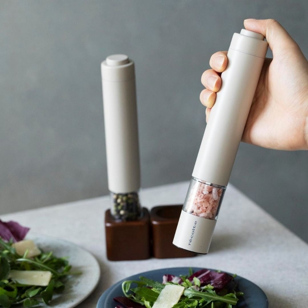ミニサイズが使いやすい!手軽に挽きたてのスパイスを楽しめる、片手で使えるスリムな電動ミル2本セット。