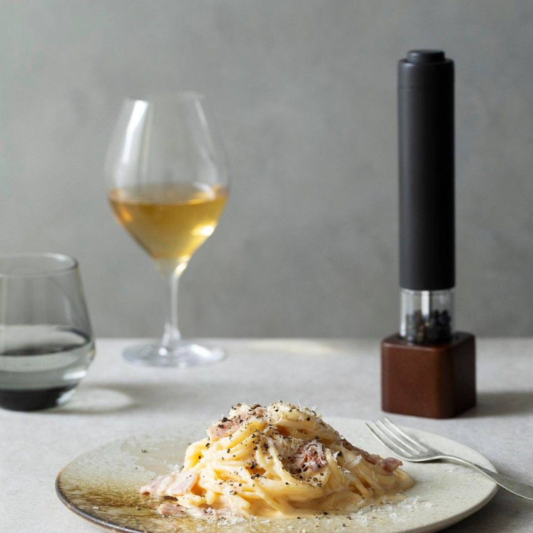 お肉やお魚の臭み消し、サラダやドレッシングなどには粗挽きなど使い分けるのもおすすめです。                                        【商品に関して】サイズ:[本体]約W3.4×D3.4×20.2cm(1本)[スタンドセット時]約W4.2×D4.2×H21.0cm(1本) 素材:[本体・フタ]ABS樹脂、ステンレス[ミル]セラミック[コンテナ]トライタン[スタンド]天然木(ゴム) 付属品:木製スタンド 内容量:約22ml <お取り扱いに関して> 【製品仕様】単4形アルカリ乾電池4本使用(別売)【使用できる材料】大きさ直径:2mm~5mm グリーンペッパー・ホワイトペッパー・ブラックペッパー・岩塩(クリスタルソルト)・ピンク岩塩・花椒・山椒 【使用できない材料】 グリーンペッパー・ホワイトペッパー・ブラックペッパー・岩塩(クリスタルソルト)・ピンク岩塩・花椒・山椒 ※岩塩などの材料の種類によって大きさ、硬さに違いがあり使用できないことがあります。