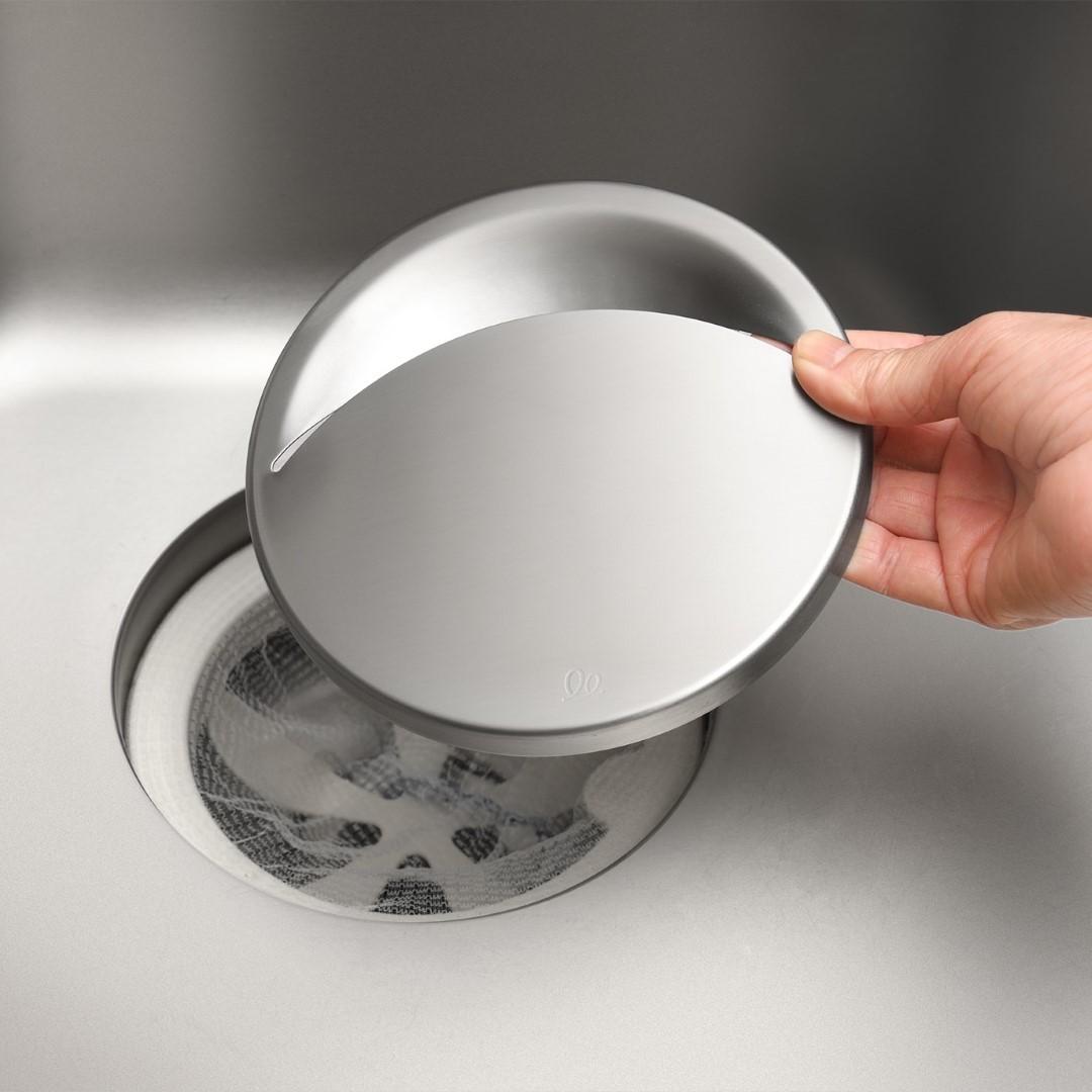 ※排水口の直径が145mm、かつ蓋設置個所の段差が14mm以上のシンクにご使用いただけます。一般的な菊割れ形状のゴム製排水溝カバーと比較し、シンプルな形状のため汚れが溜まりにくく、歯ブラシなどを使わなくてもササッと洗えます。残菜が詰まらずスムーズに流れ落ち、シンクの見た目もスタイリッシュに保てます。【商品に関して】サイズ:直径14.4×高さ1.9cm(フチ高さ1.2cm) 重量:118g 素材:ステンレス鋼(抗菌ステンレス) 原産国:日本 <お取り扱いに関して>【設置可能条件】①排水口直径14.5cm ②蓋設置箇所の段差が1.4cm以上 ・食器洗い乾燥機可 ・漂白剤不可