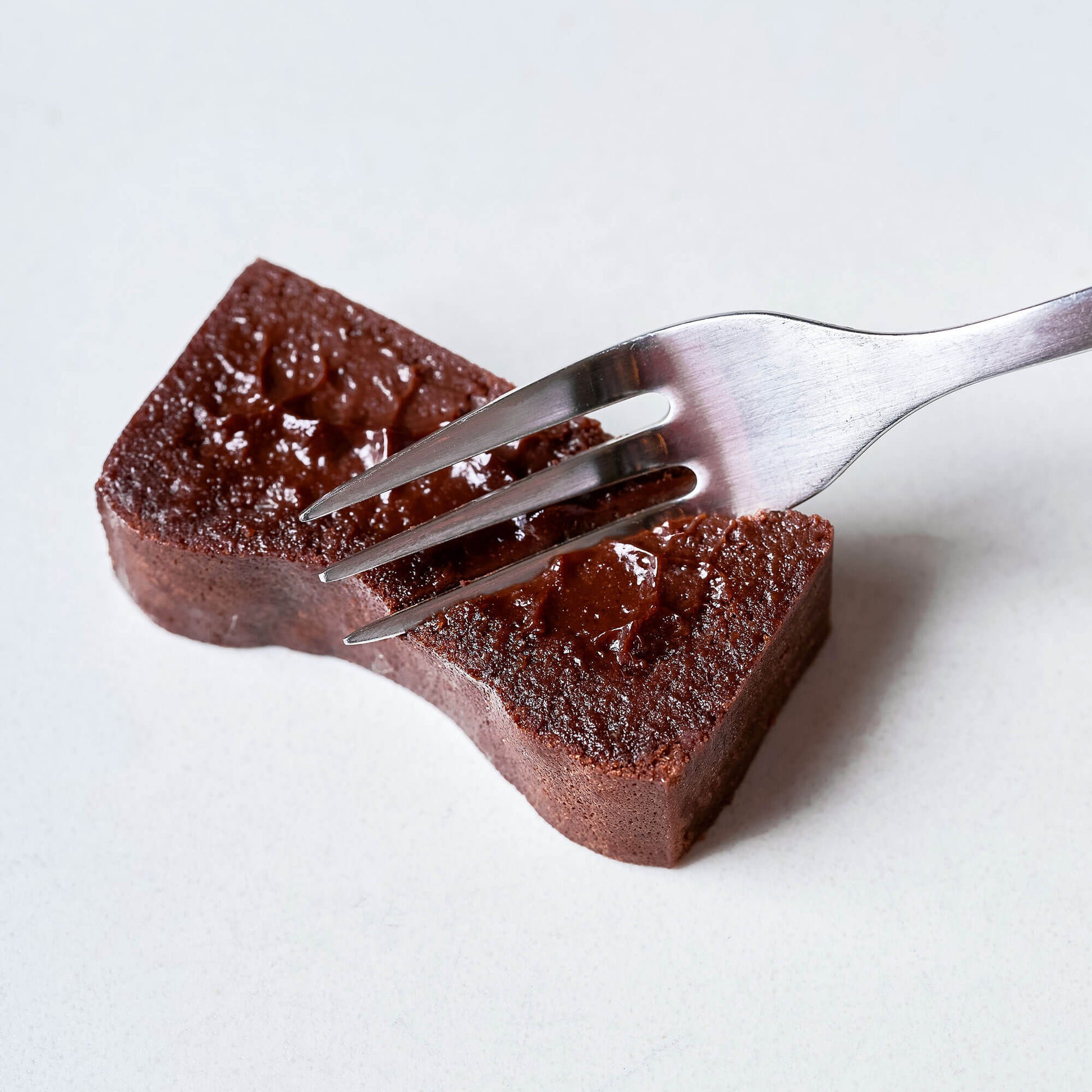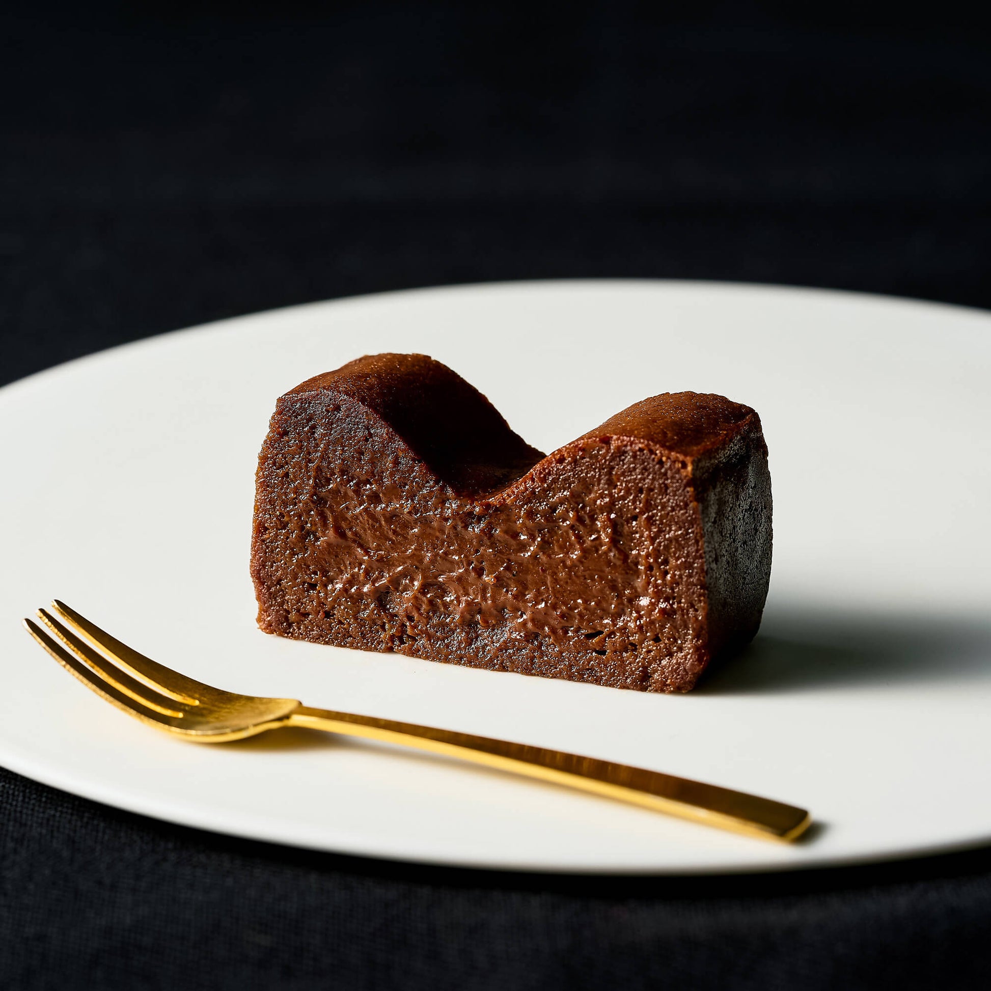 生地段階で行う3度の温度帯違いの繊細な火入れにより、ガトーショコラの外側から内側にむかって、徐々になめらかなテクスチャーになっていくように仕上げています。外はしっかりとした食感、中はとろけるやわらかさでテクスチャーのコントラストが楽しめることは飽きずに食べ進められるポイントです。