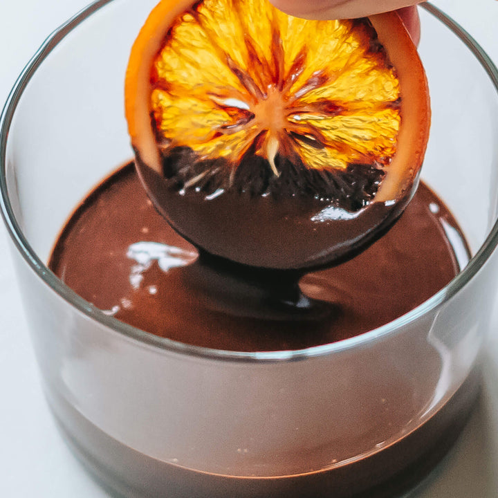 ブラッドオレンジの深い甘苦さは夜のリラックスタイムに心地よくなじみます。フルボディのチョコレートを合わせ、お酒にも合わせやすい1枚に仕上げました。