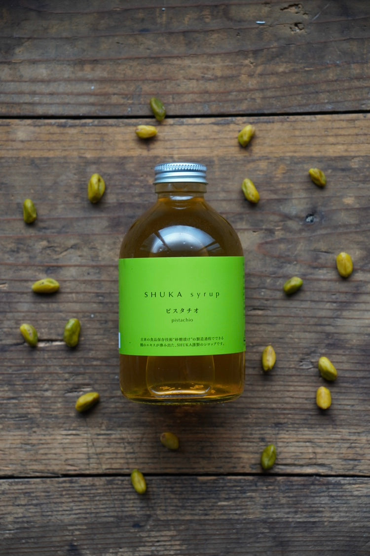 ナッツの女王とも言われるピスタチオ。特に色が鮮やかな若い"スーパーグリーン"と呼ばれるものだけを漬け込んだ、ピスタチオのコクと軽やかさを併せ持つシロップ。
