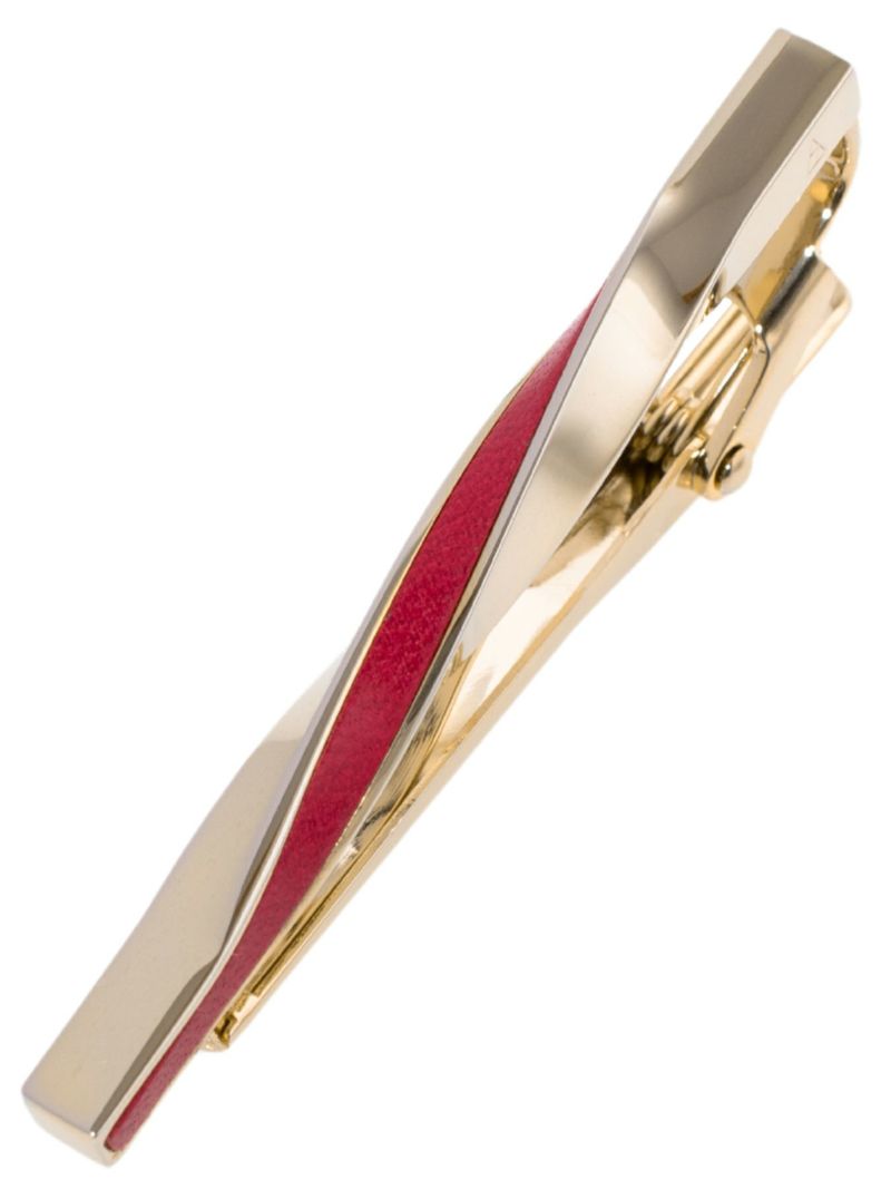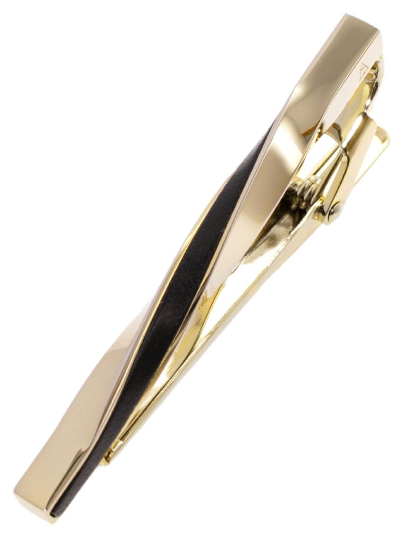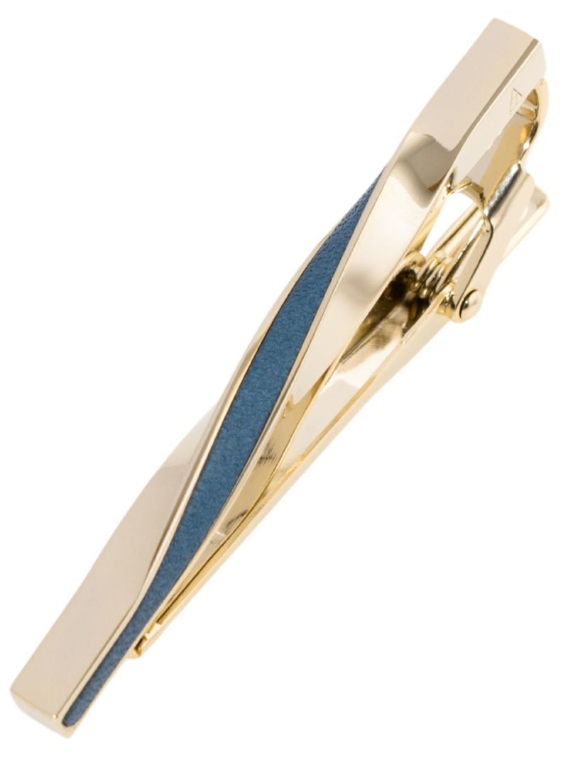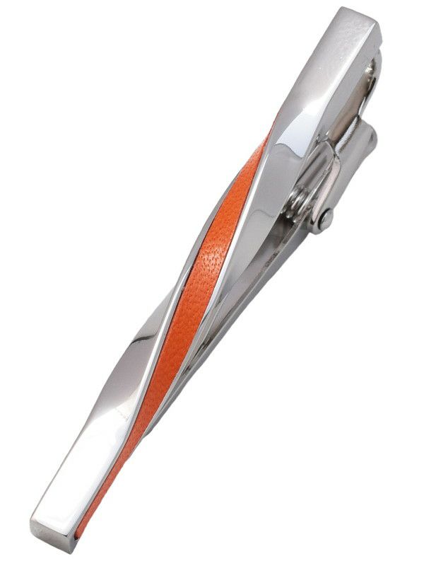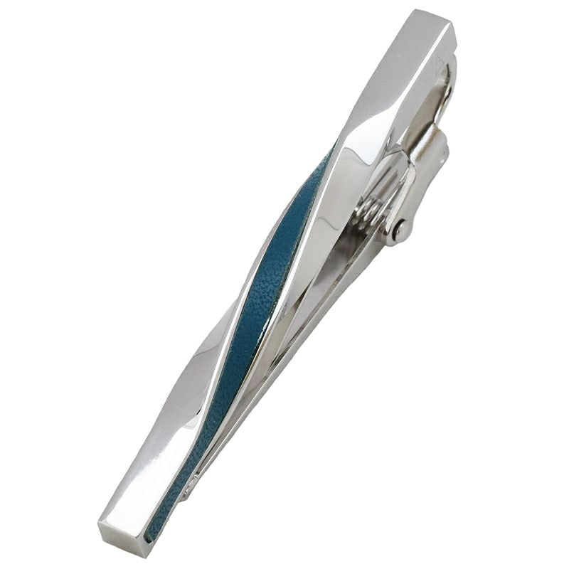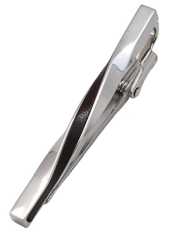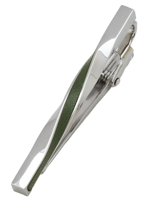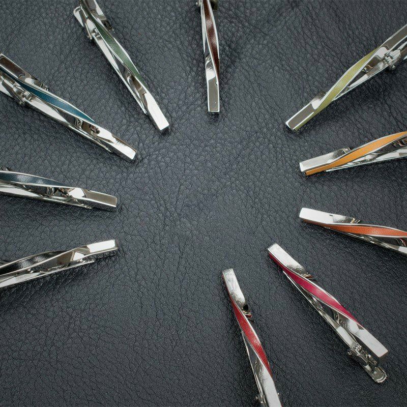 4mm角の厚めの真鍮生地を力強く捻りこみ、その表面に本革をあしらった高級感のあるネクタイピンです。